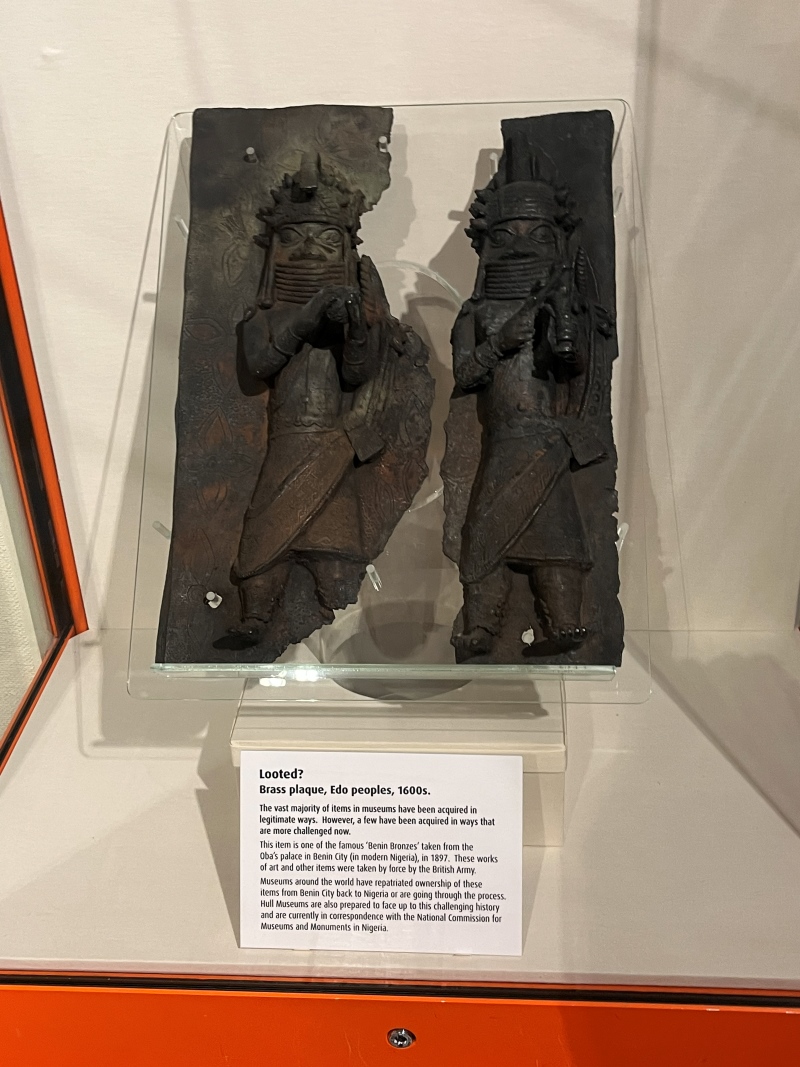 Even more directly connected to A111 and the art of Benin - the museum (for now) holds one 'Benin Bronze'. Plenty of history layered on this object - it was salvaged in its current state from the wreckage of Hull's Museum, which was completely destroyed during WWII bombing.