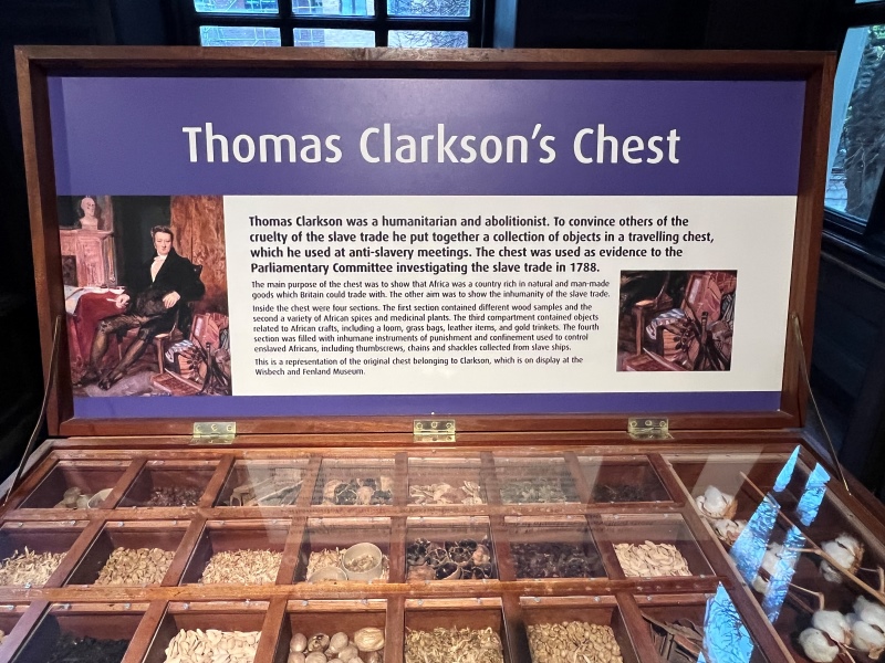 There is also a reconstruction of Thomas Clarkson's Chest - another example of the campaigning inventiveness the abolitionists showed. This displayed potential African goods that might form the basis of trade as an alternative to the purchase of enslaved people - lower layers of the chest contained shocking instruments of punishment and restraint.