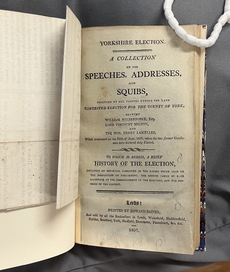 Once an election was over you could relive the best bits of invective and satire collected together in a 'squib book'. This one was produced in 1807 by the editor of the Leeds Mercury, Edward Baines.Â
