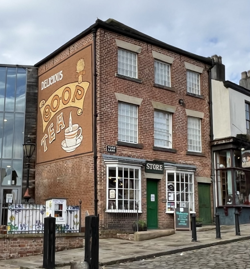 Way back in October my partner needed to get to Rochdale, and wasn't too shocked to discover my enthusiasm to take her was A225-related. We 'negotiated' a brief stop here, which is 31 Toad Lane - site of the first co-operative store run by the Rochdale Society of Equitable Pioneers. Opened in 1844 selling a limited range of goods (sugar, butter, oatmeal and flour) this wasn't the first co-operative - but it has ended up having iconic status in the wider movement. It was established as a museum in 1931 and has a small but fascinating exhibition about co-operatives from the industrial revolution onwards. It's taken until now for the module to catch up with me, but I can now celebrate late-Victorian working class association along with chapter 19!