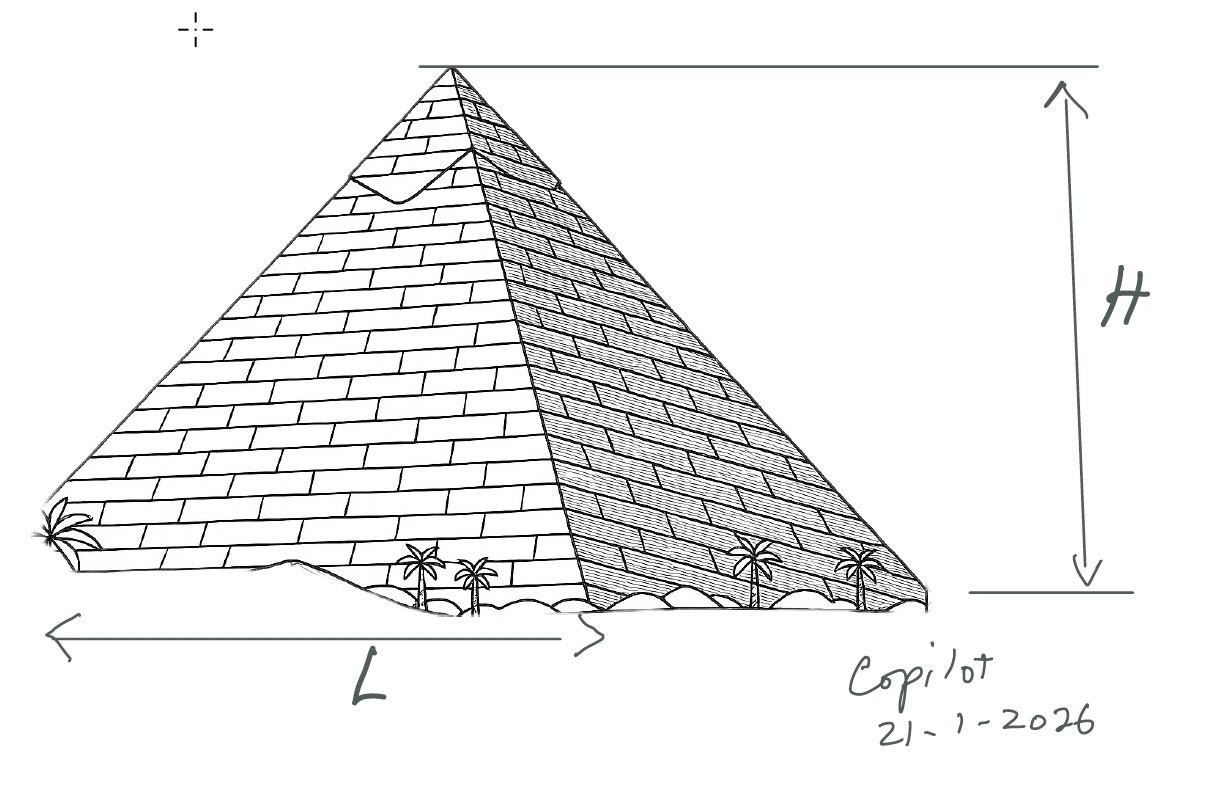So he calls in the palace mathematicians and asks them how to make the volume of his new pyramid as large possible for a given amount of marble. What is the optimal ration between the pyramids height H and the base length L of its sides?