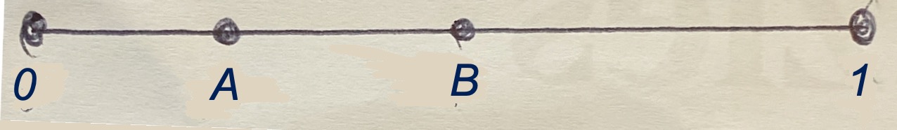 PS I have seen it argued that the two points divide the unit interval into three segmentsl and because the points are completely random the expected lengths of all three segments (and therefore the distance between the points should by symmetry be . I suppose this is correct but I have a slight feeling of unease. Is it too glib?