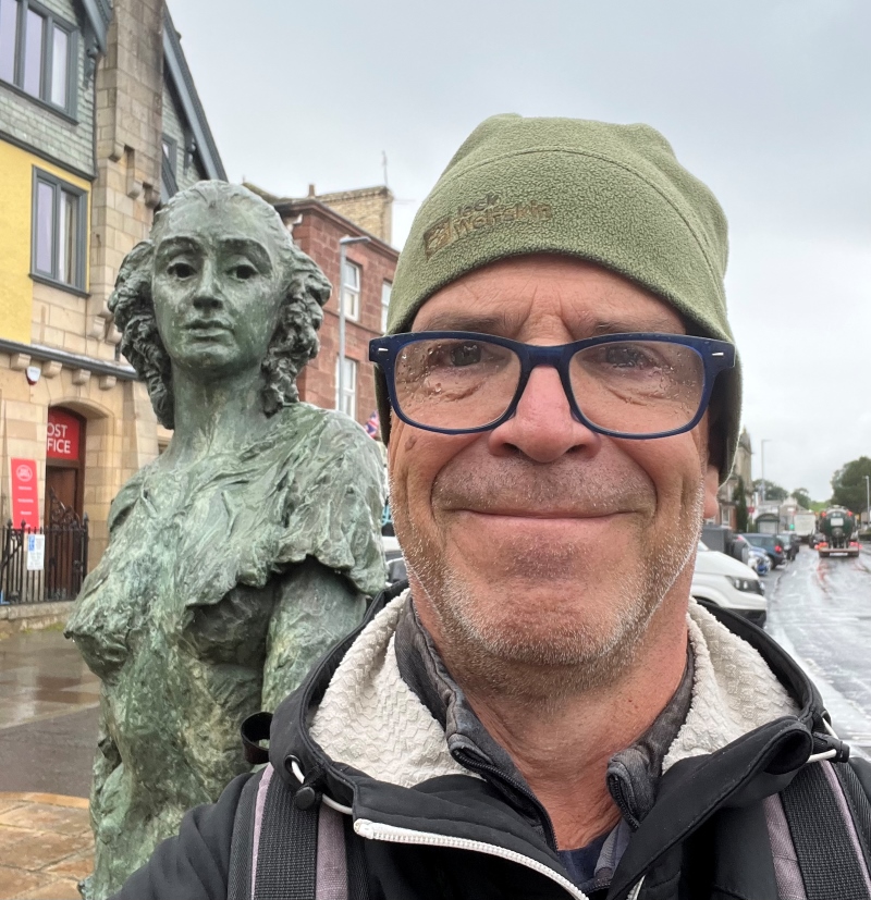 A selfie with Lady Anne to get the day going! (The rain-misted glasses were a sign of how this stage would largely progress).